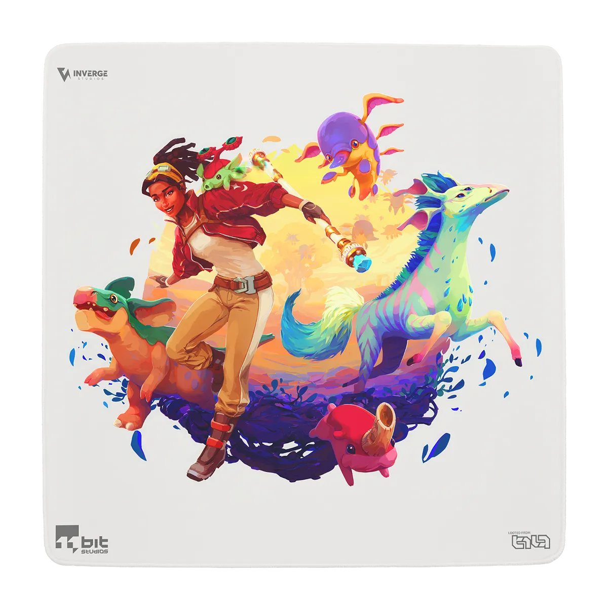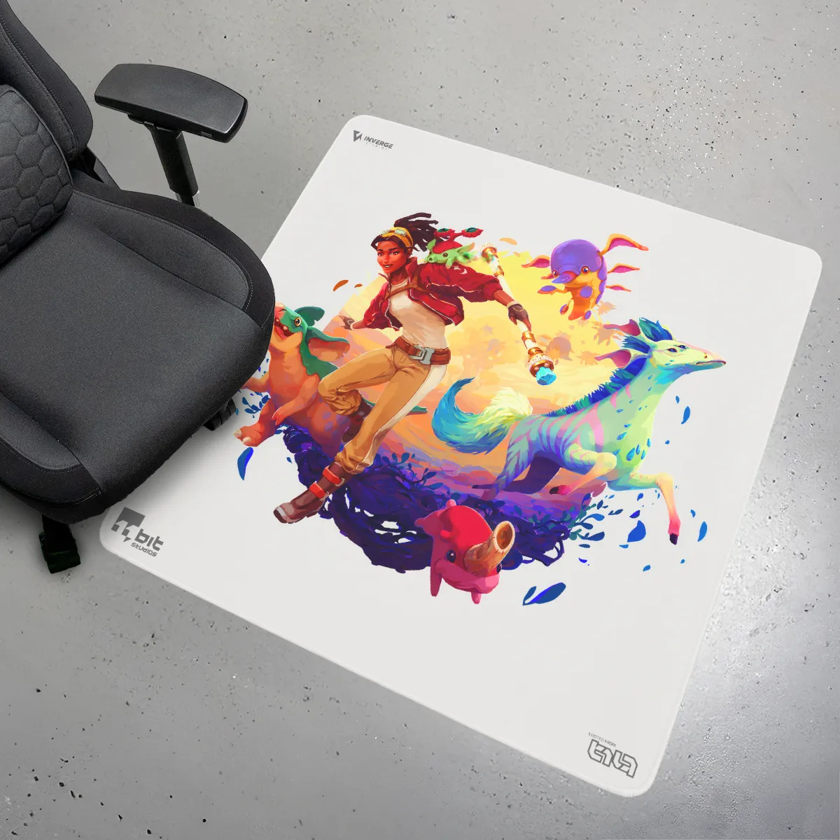 Add some warmth and positivity to your gaming setup and workspace! Explorer Vic and her friends from planet Ava will bring colors to your day on this extraordinary floor pad.